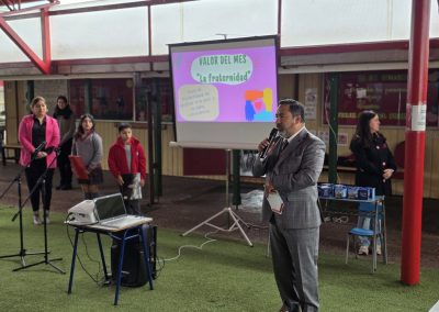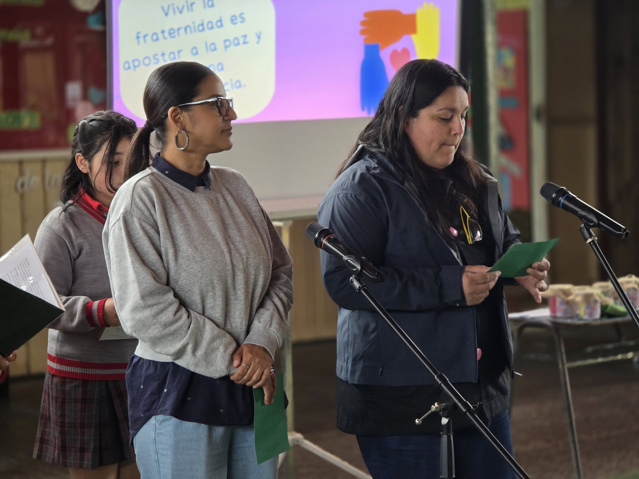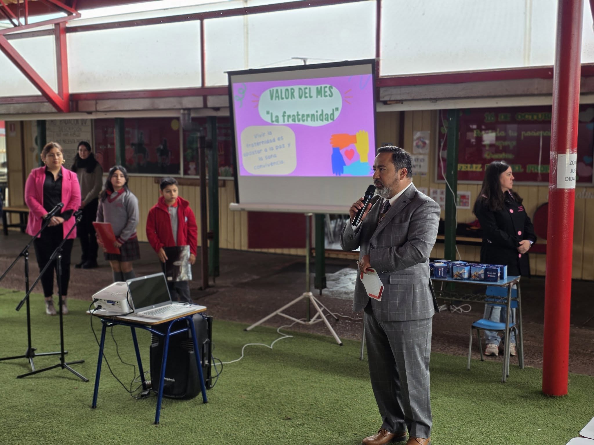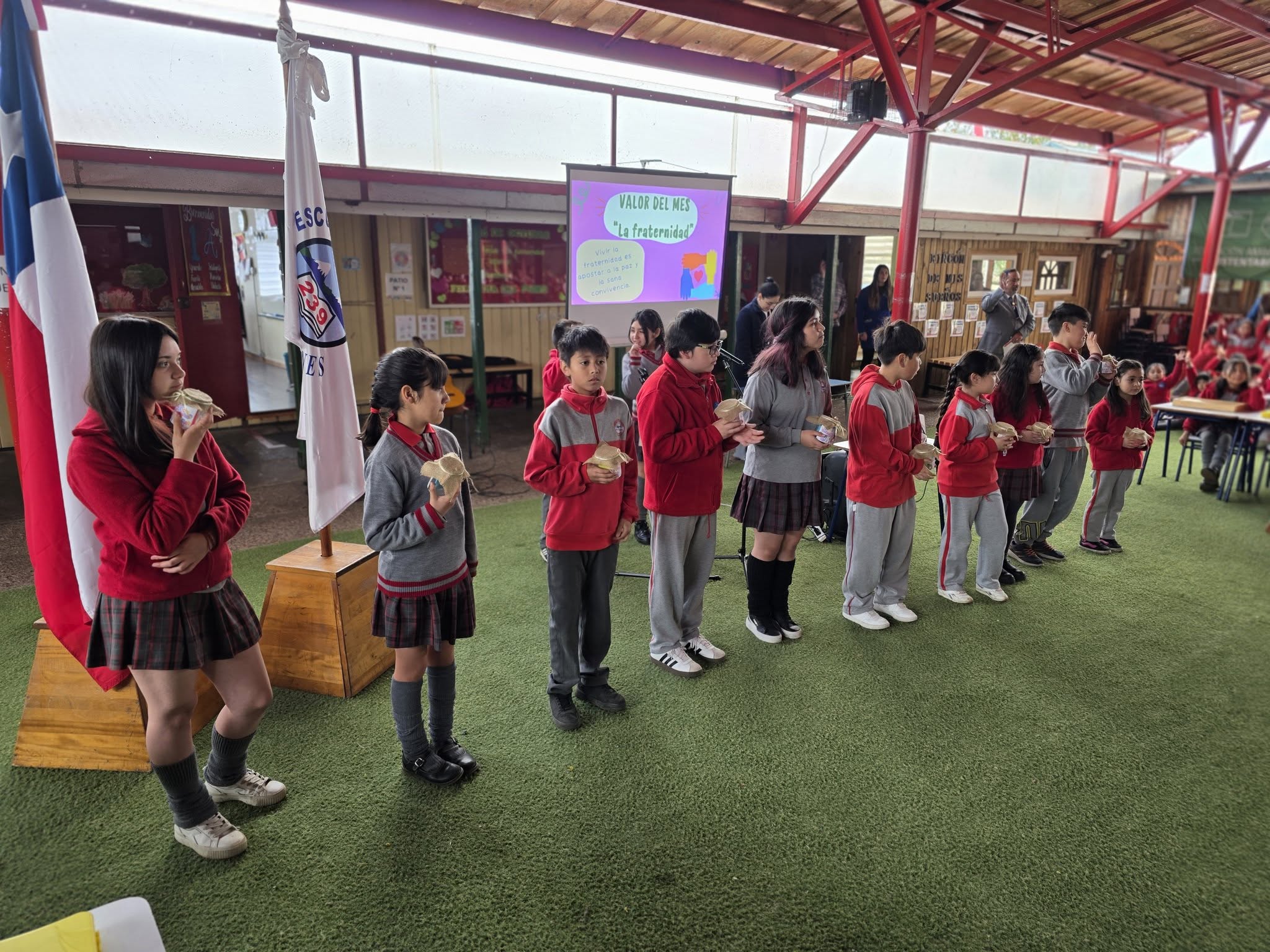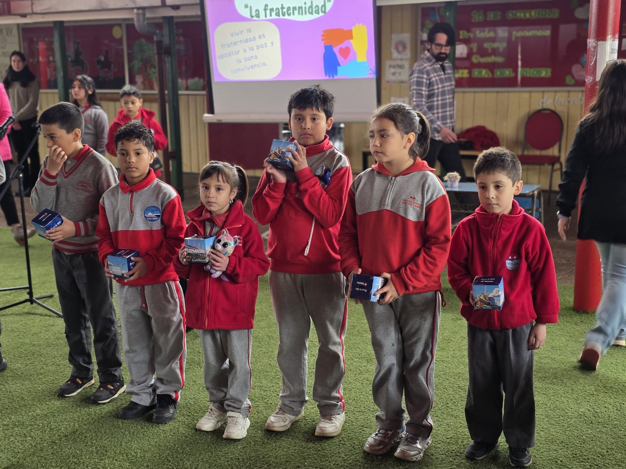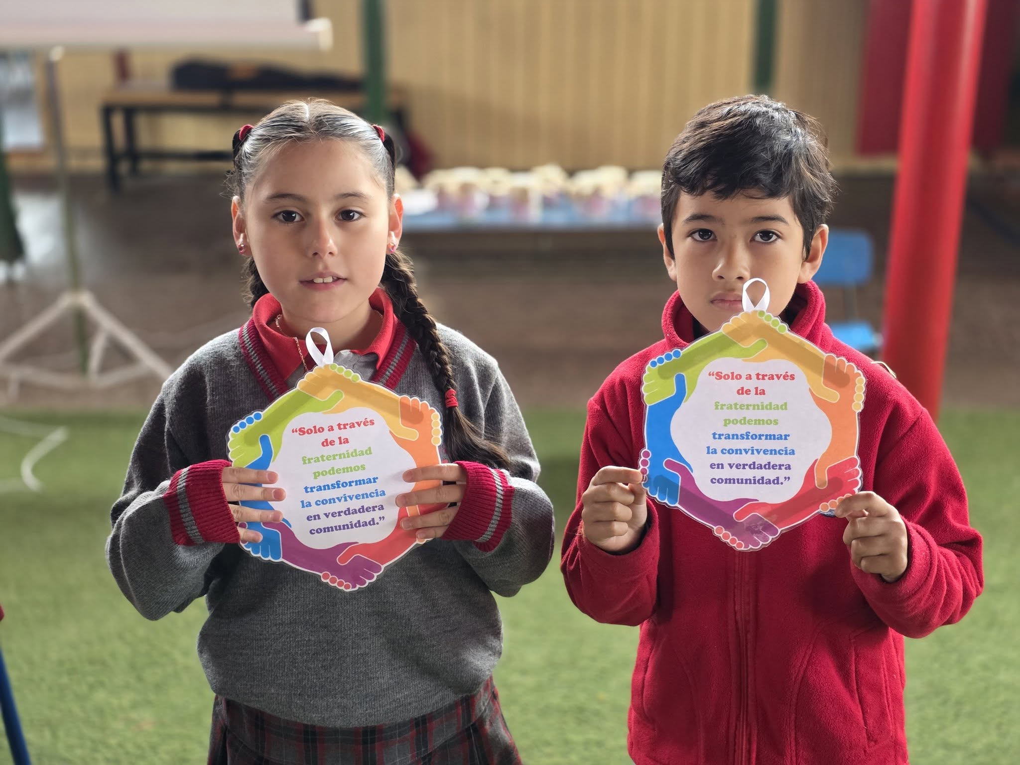 Dicho acto fue dirigido por los estudiantes, y presentaron una canción, un desafío, la asistencia de dos apoderadas y una representación que entregó como mensaje que «Cuando somos fraternos, nadie carga su mochila solo».