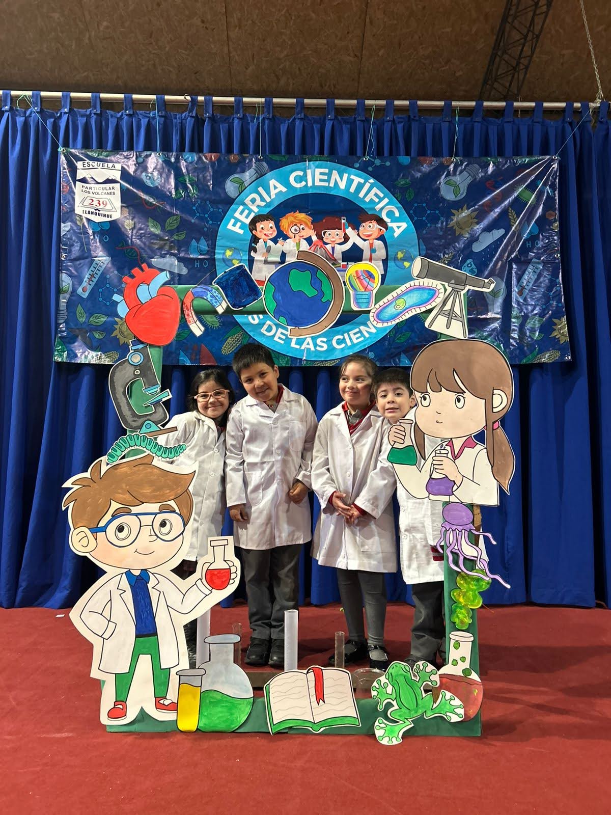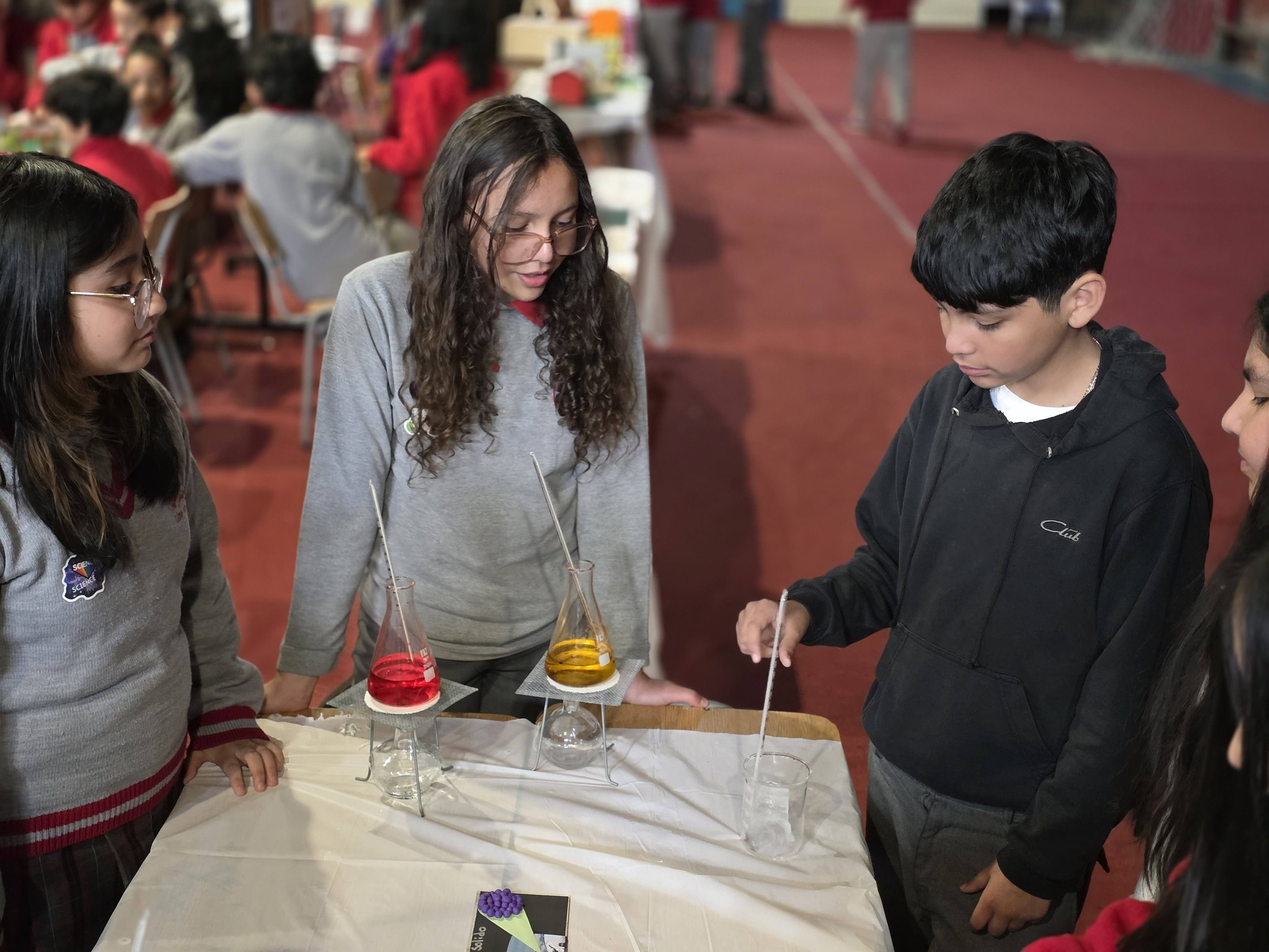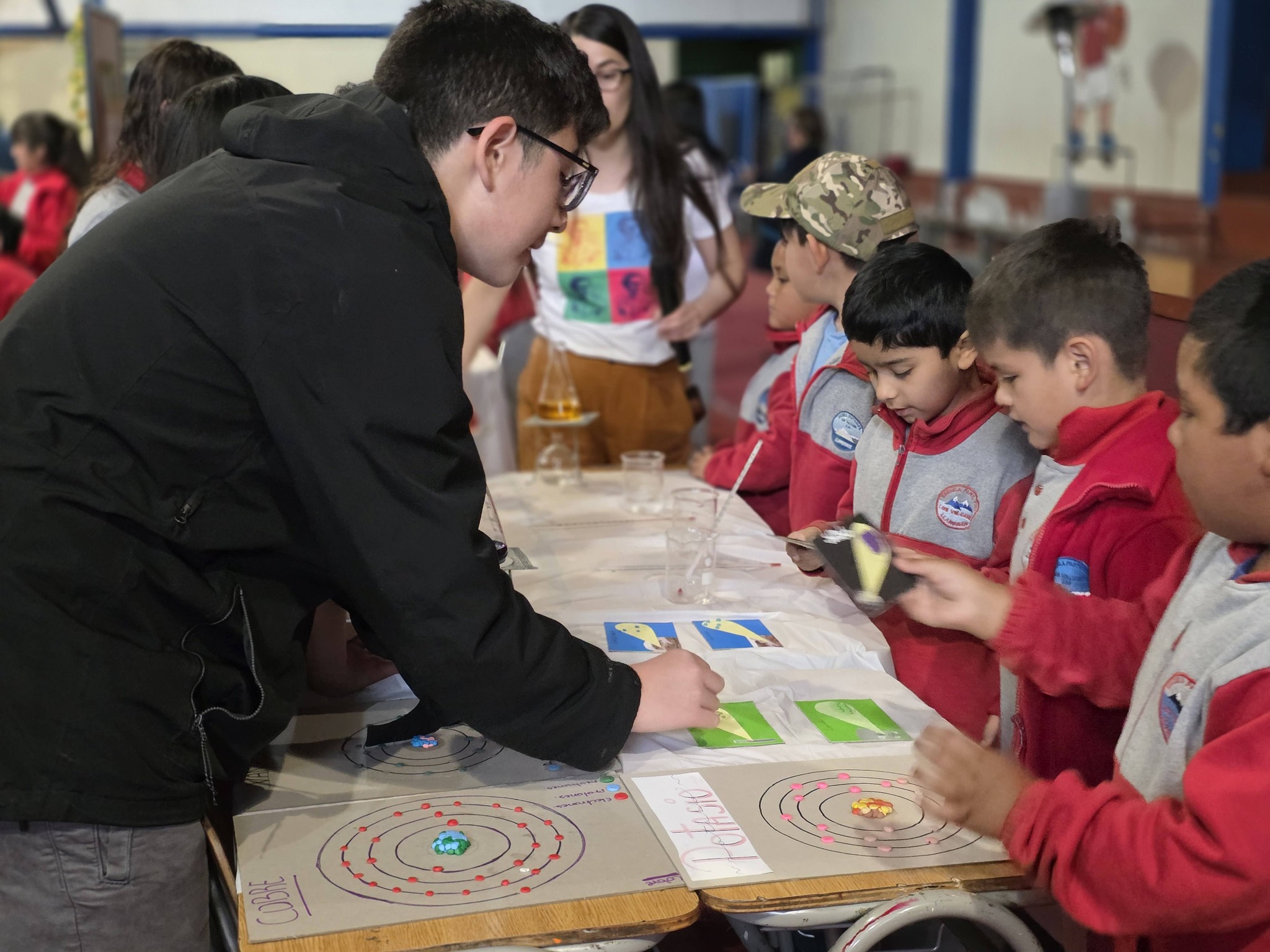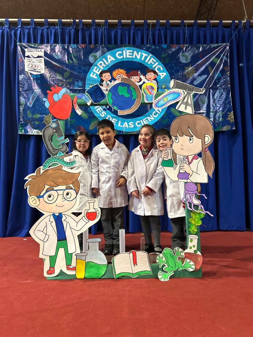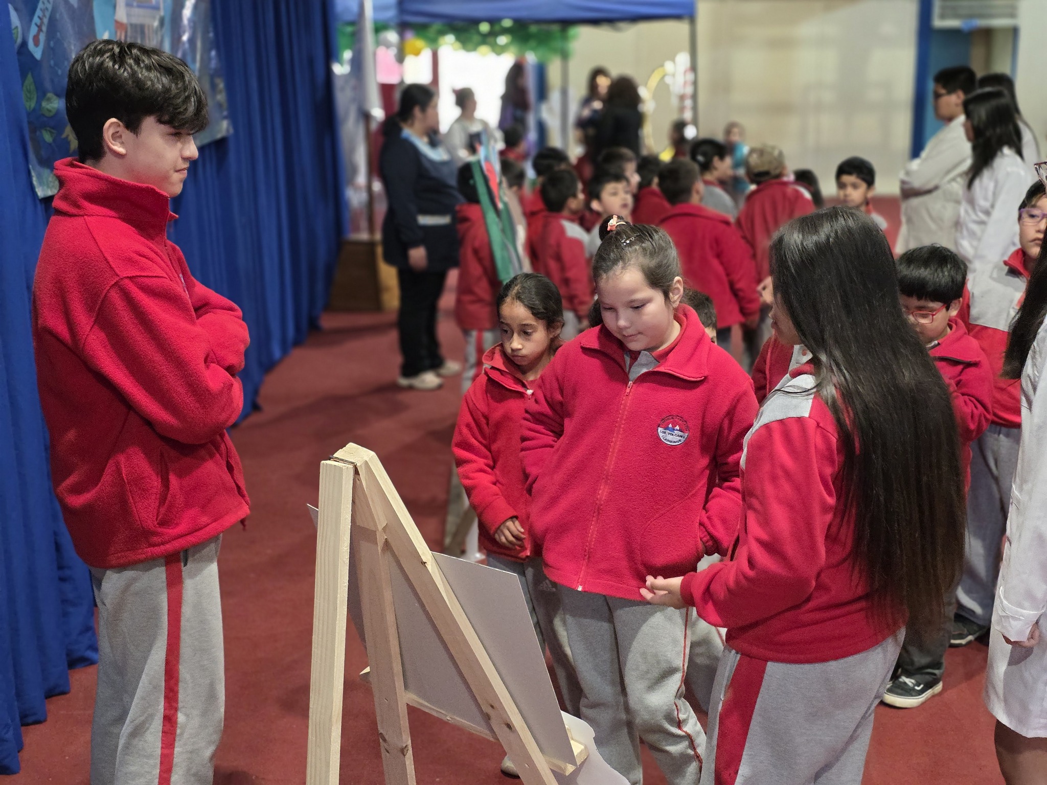 Los Stand de cada curso, estaban representados por 4 alumnos, además tenían un poster con toda la información, el experimento y algunos recuerdos.