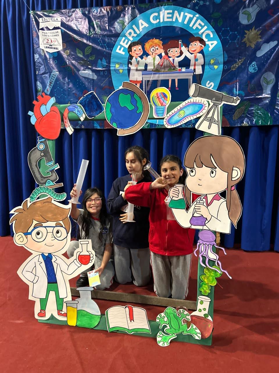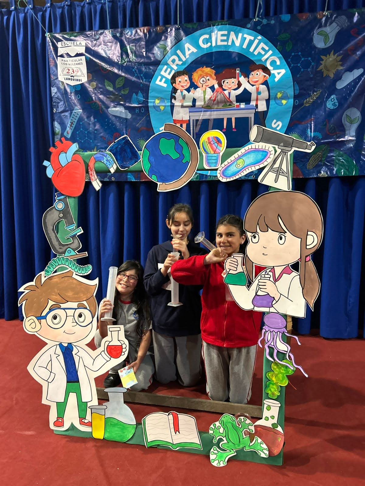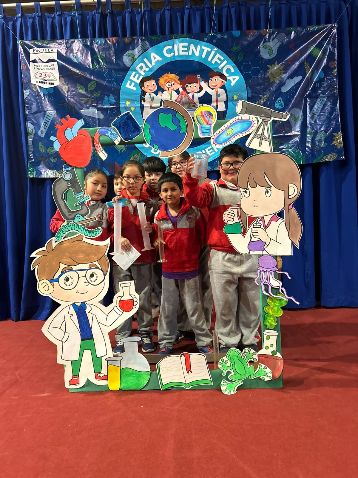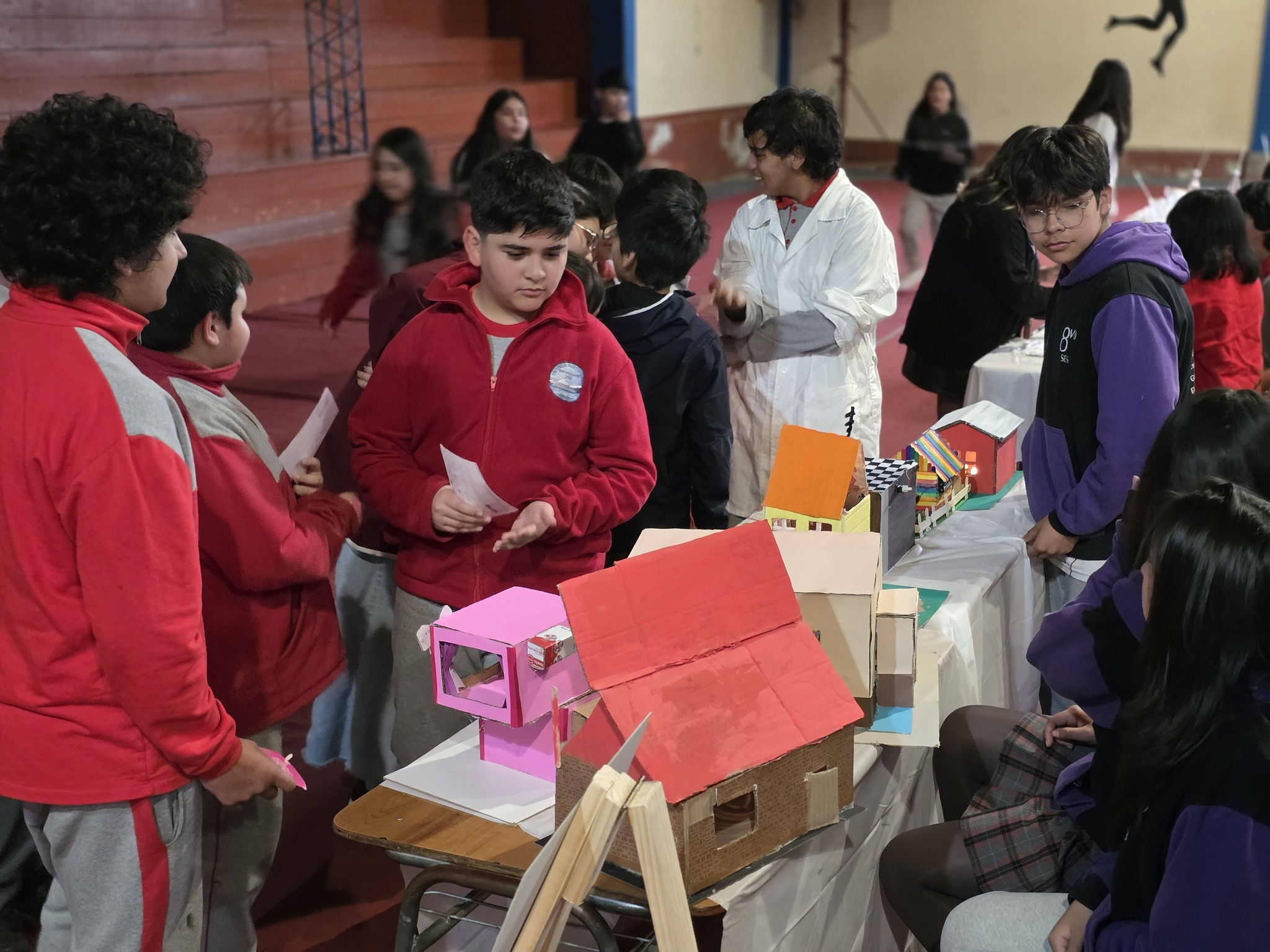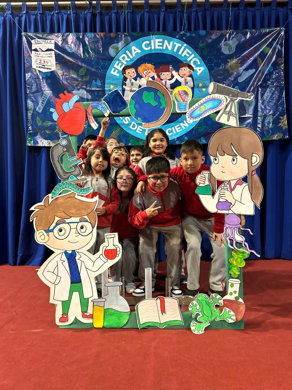 Los Stand de cada curso, estaban representados por 4 alumnos, además tenían un poster con toda la información, el experimento y algunos recuerdos.