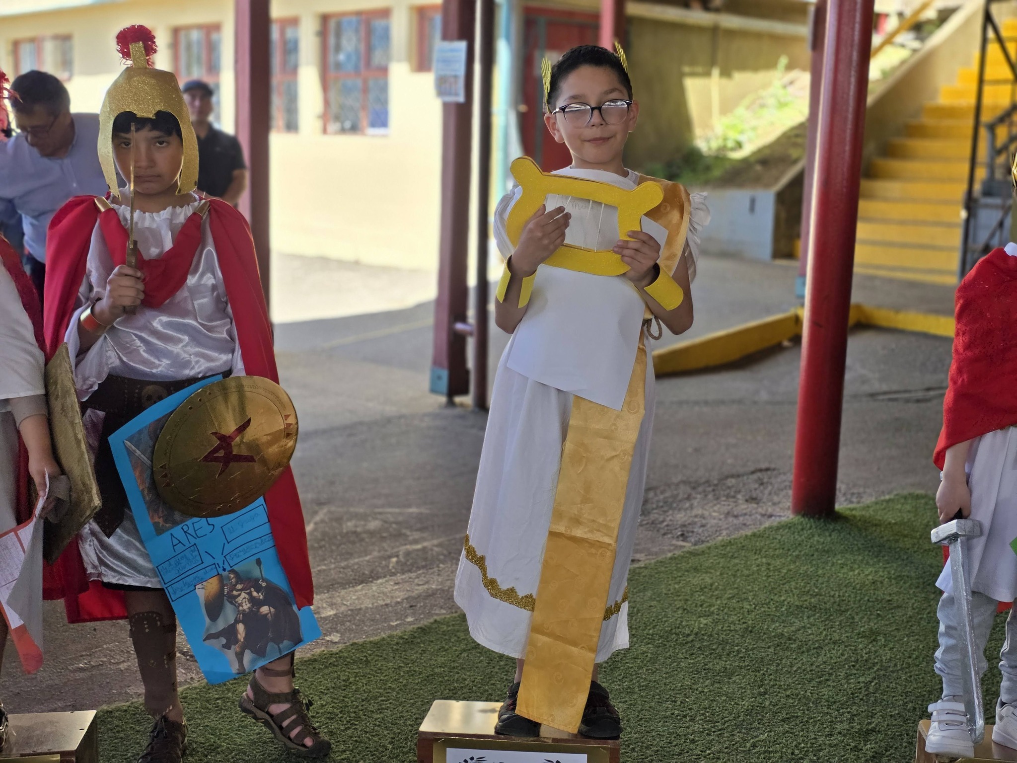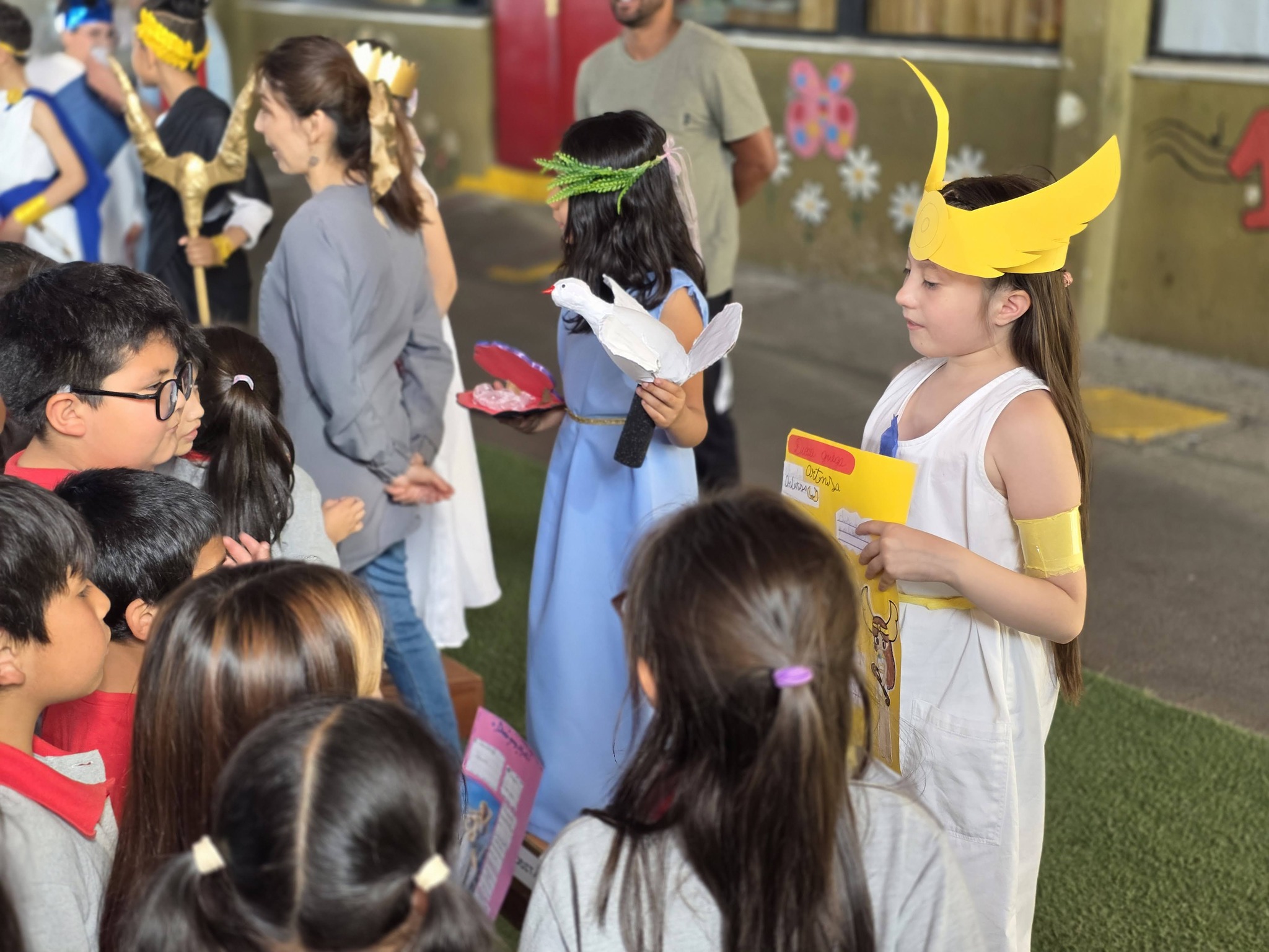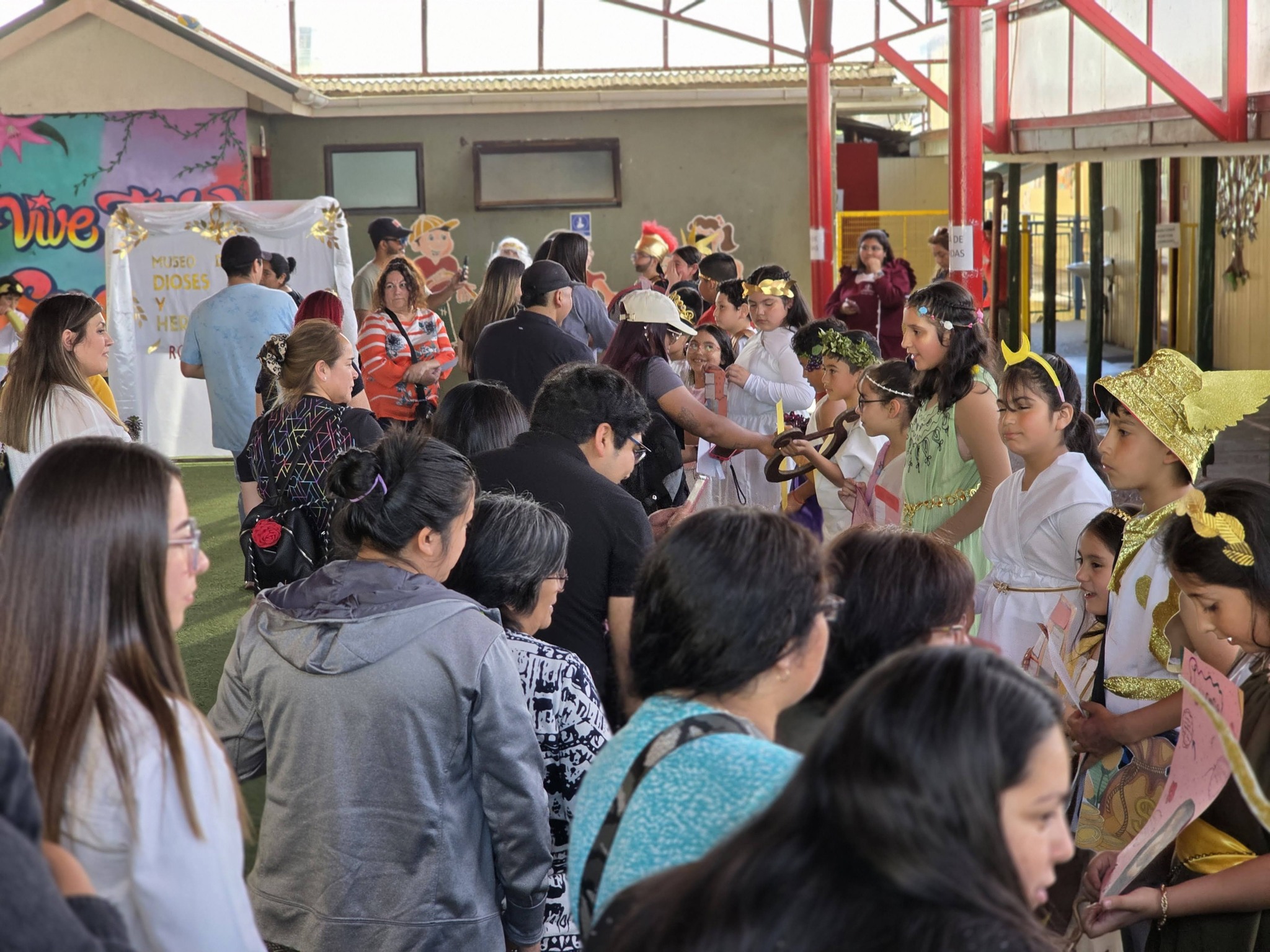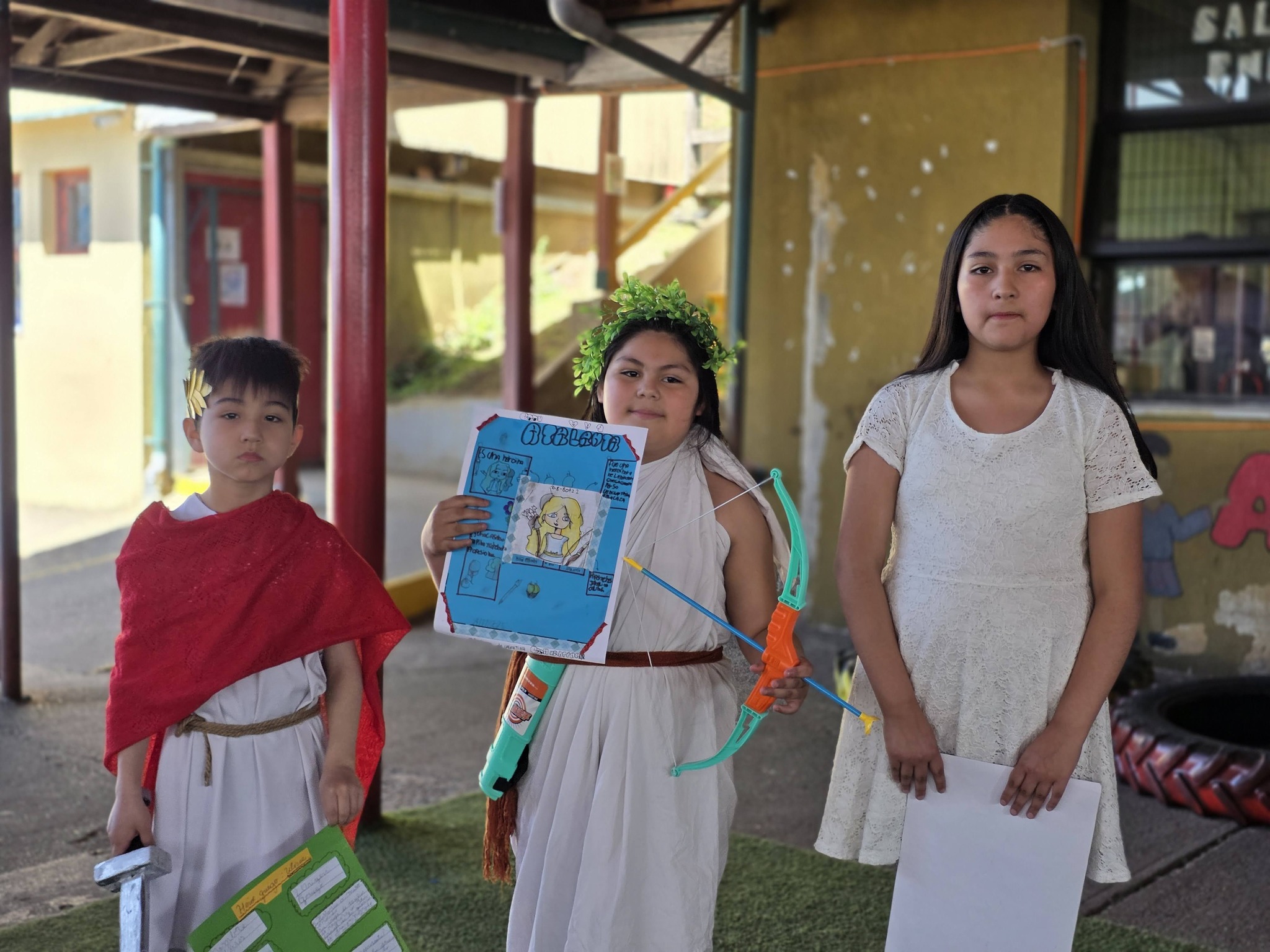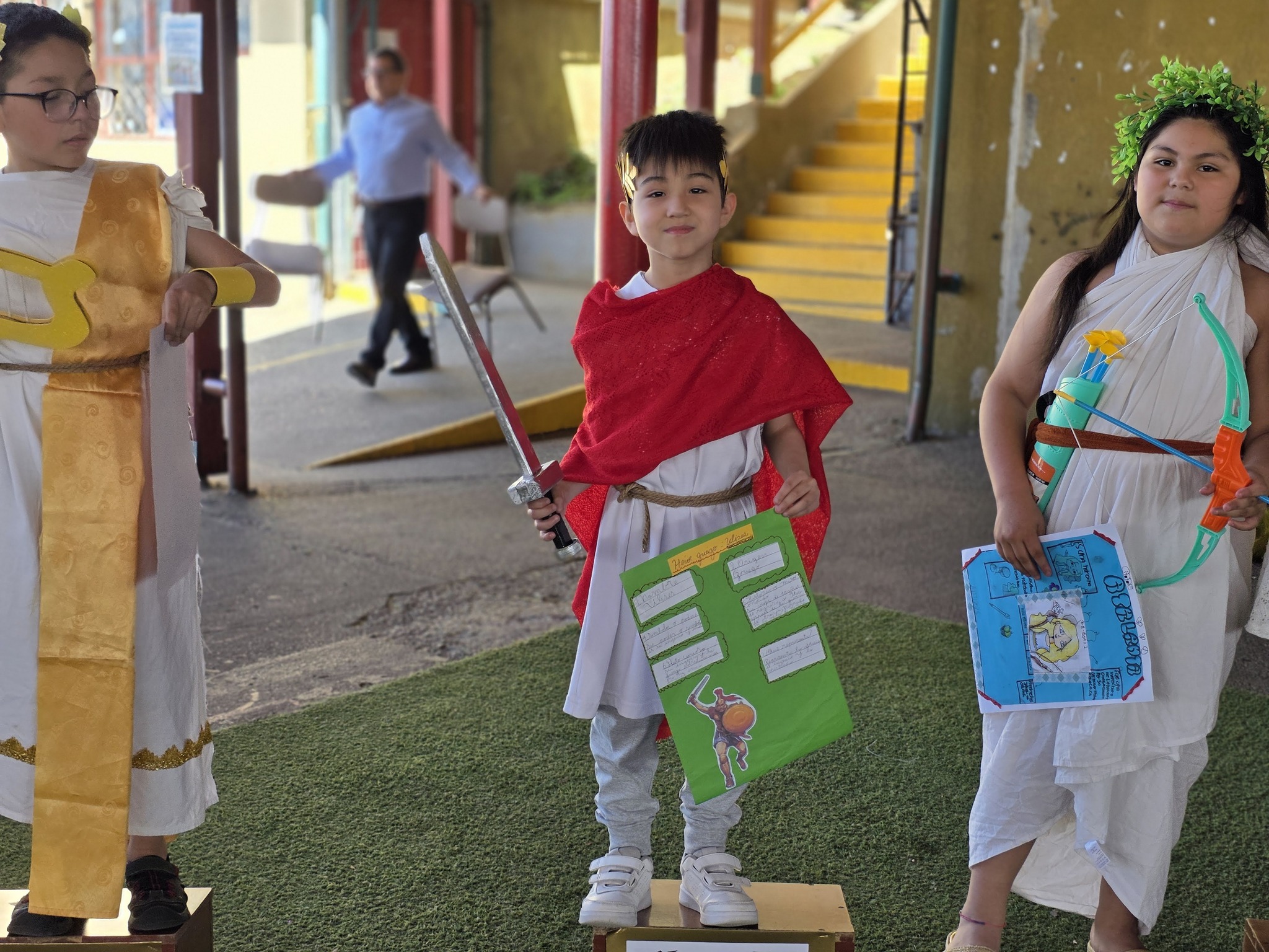 El jueves pasado y en el marco de la asignatura de Historia, Geografía y Ciencias Sociales, los cursos de 3°A y 3°B, representaron a los Dioses y Héroes de la cultura de Grecia y Roma. El patio techado se convirtió en una sala de Museo, donde los padres y apoderados pudieron visitar y conocer mas sobre estos personajes mitológicos. Del mismo modo, los cursos del I Ciclo pasaron visitando el museo y cada estudiante con su representación, pudo contar mas detalles del su personaje.