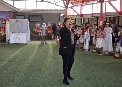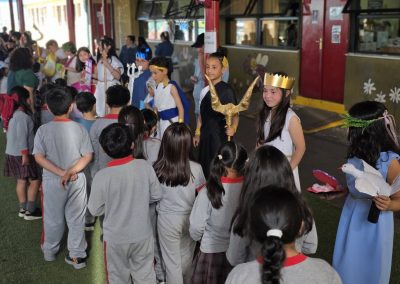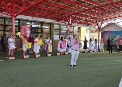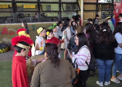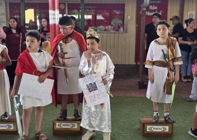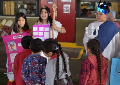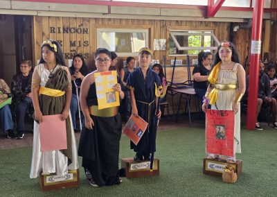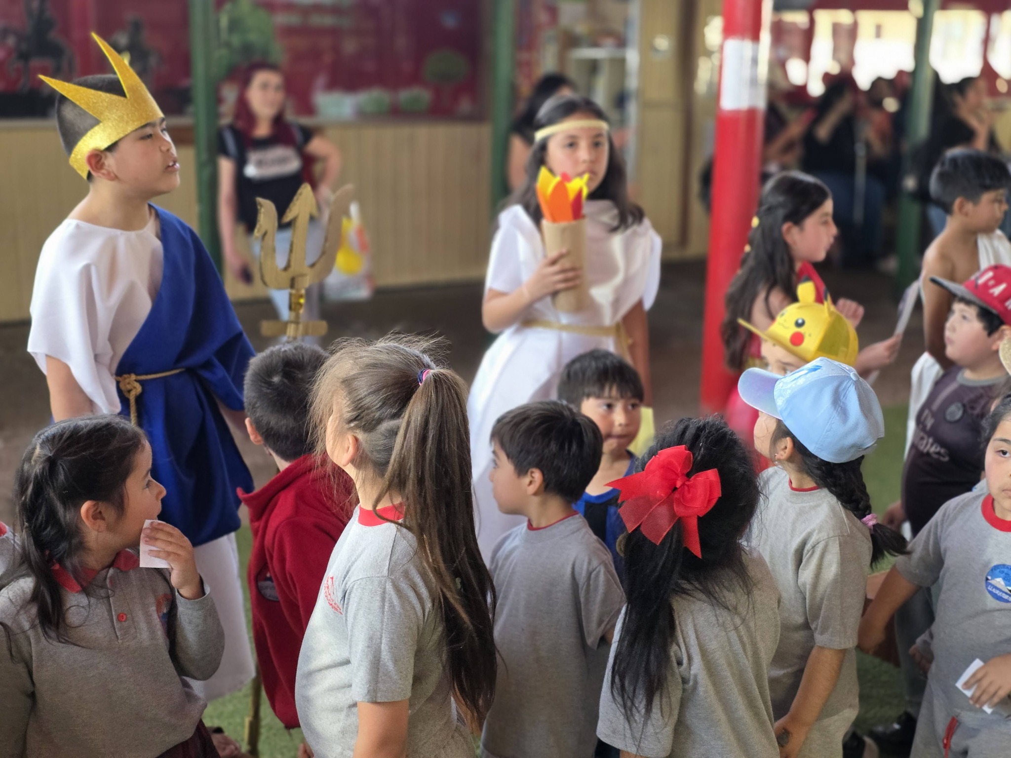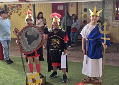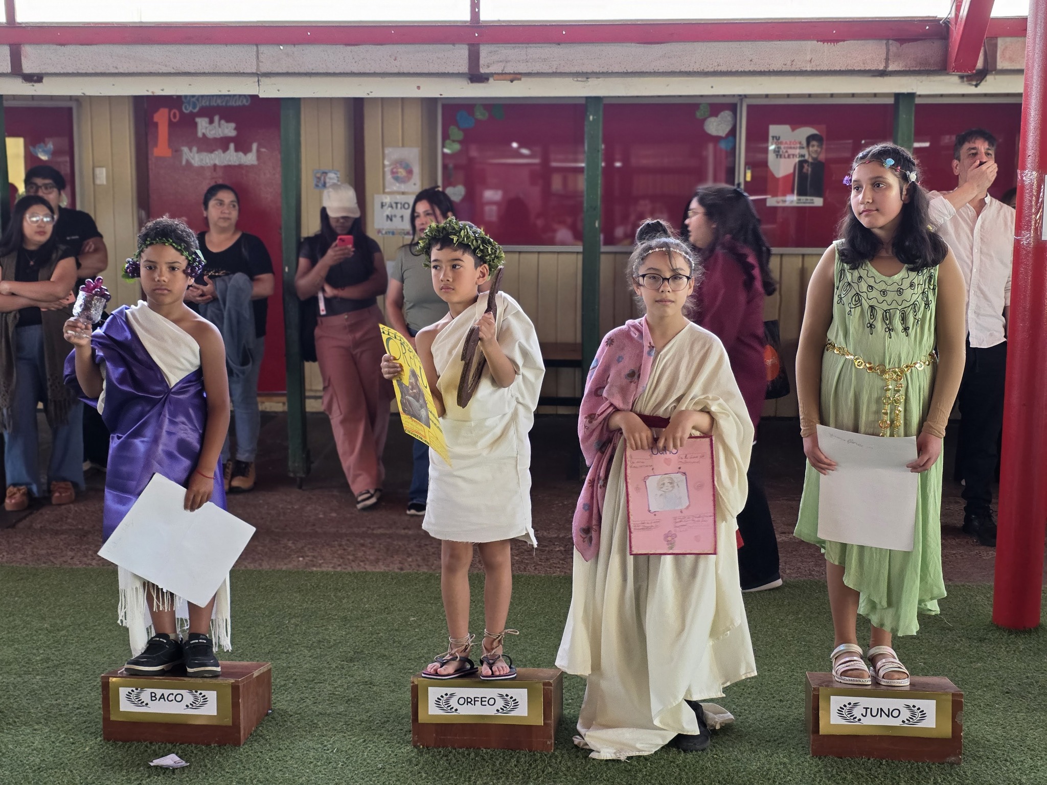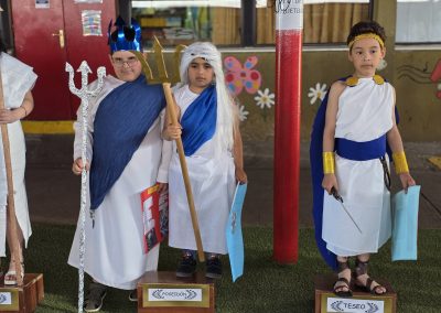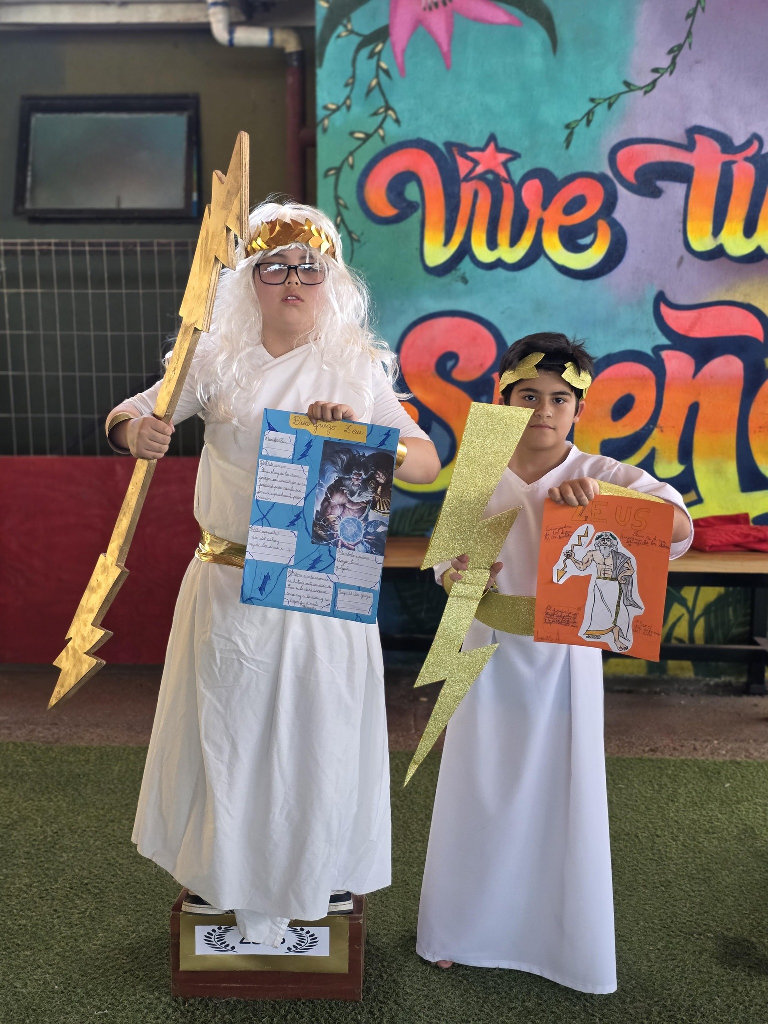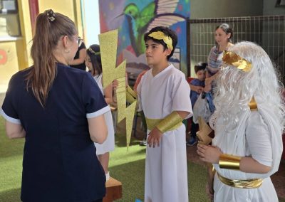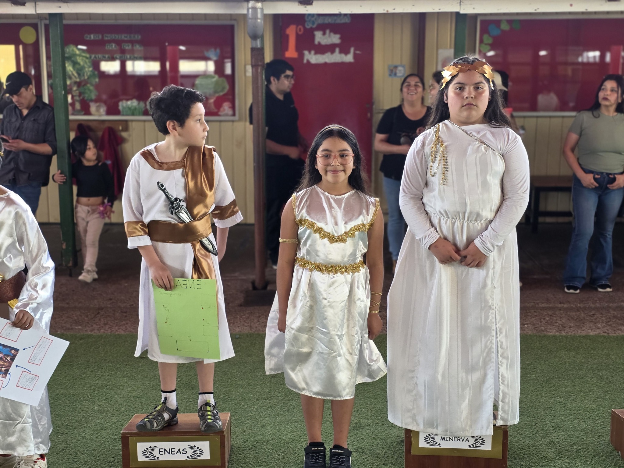 El jueves pasado y en el marco de la asignatura de Historia, Geografía y Ciencias Sociales, los cursos de 3°A y 3°B, representaron a los Dioses y Héroes de la cultura de Grecia y Roma. El patio techado se convirtió en una sala de Museo, donde los padres y apoderados pudieron visitar y conocer mas sobre estos personajes mitológicos. Del mismo modo, los cursos del I Ciclo pasaron visitando el museo y cada estudiante con su representación, pudo contar mas detalles del su personaje.