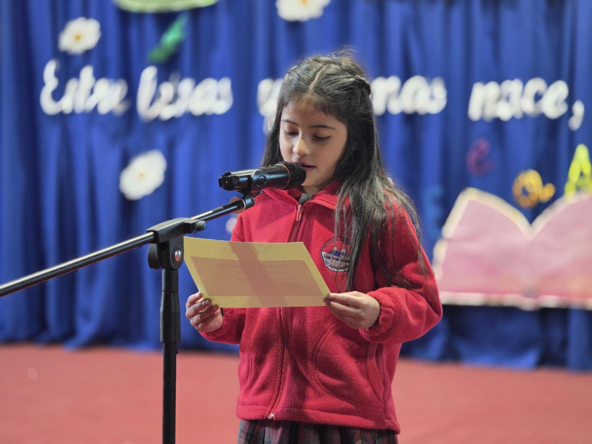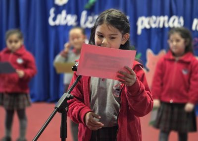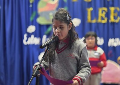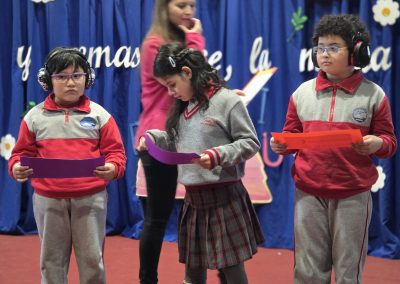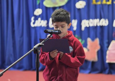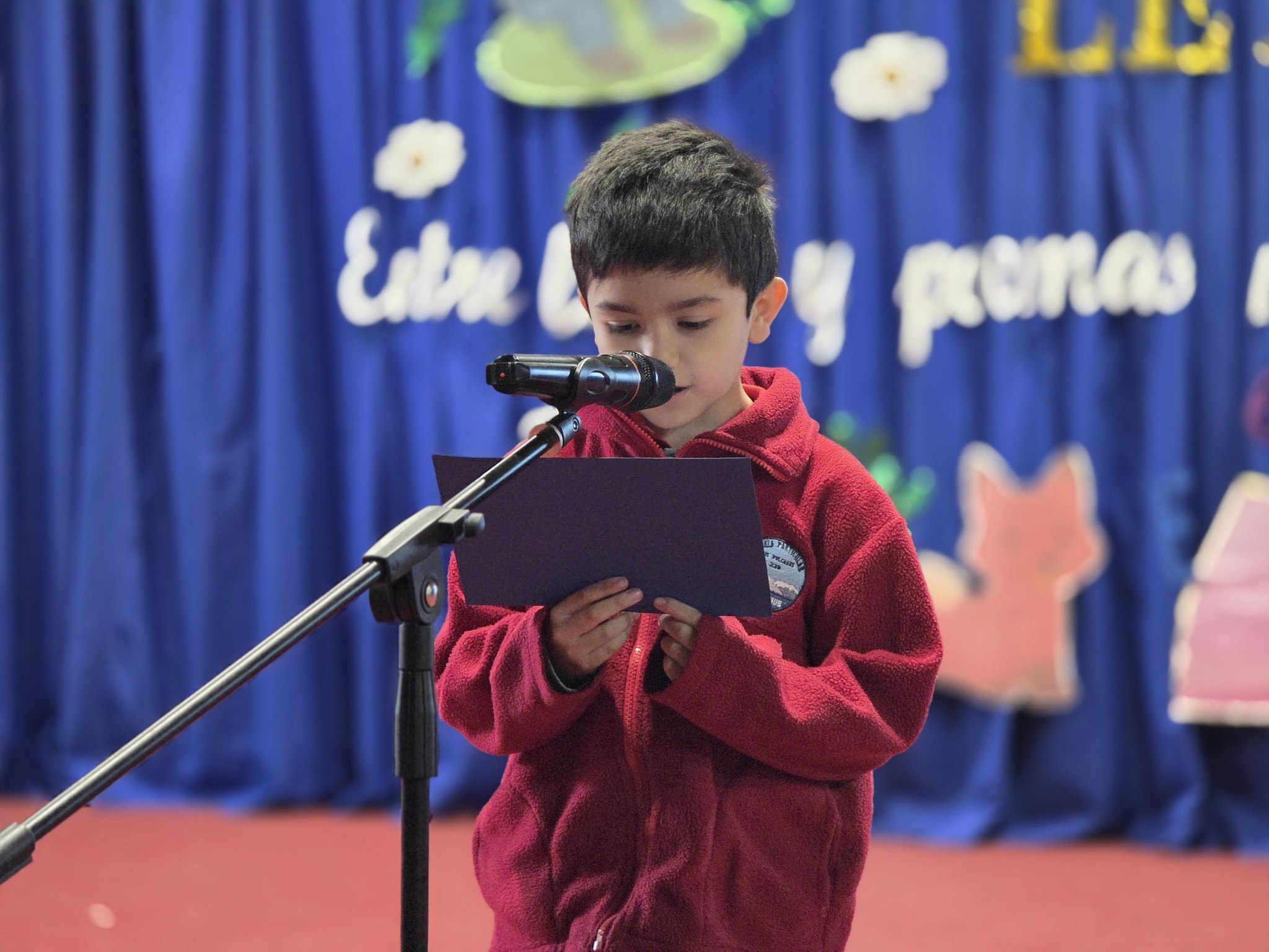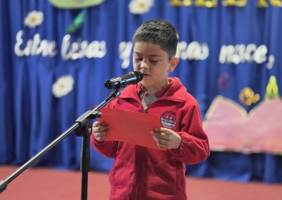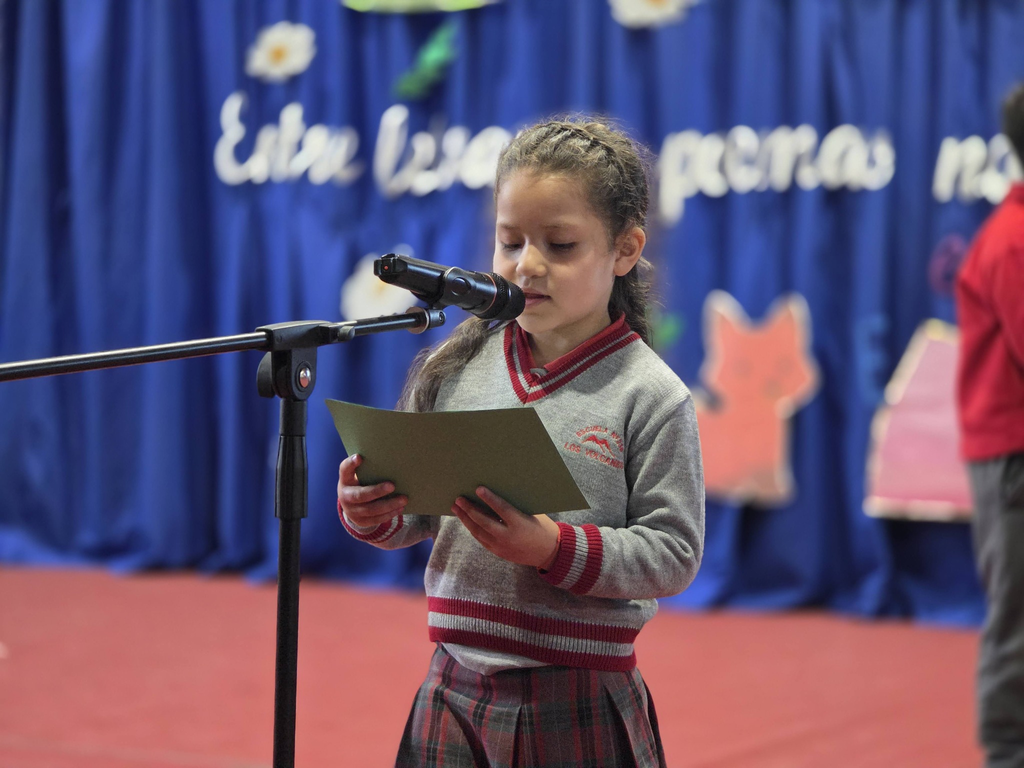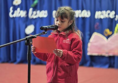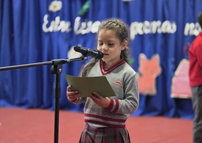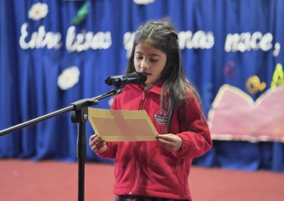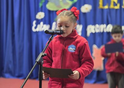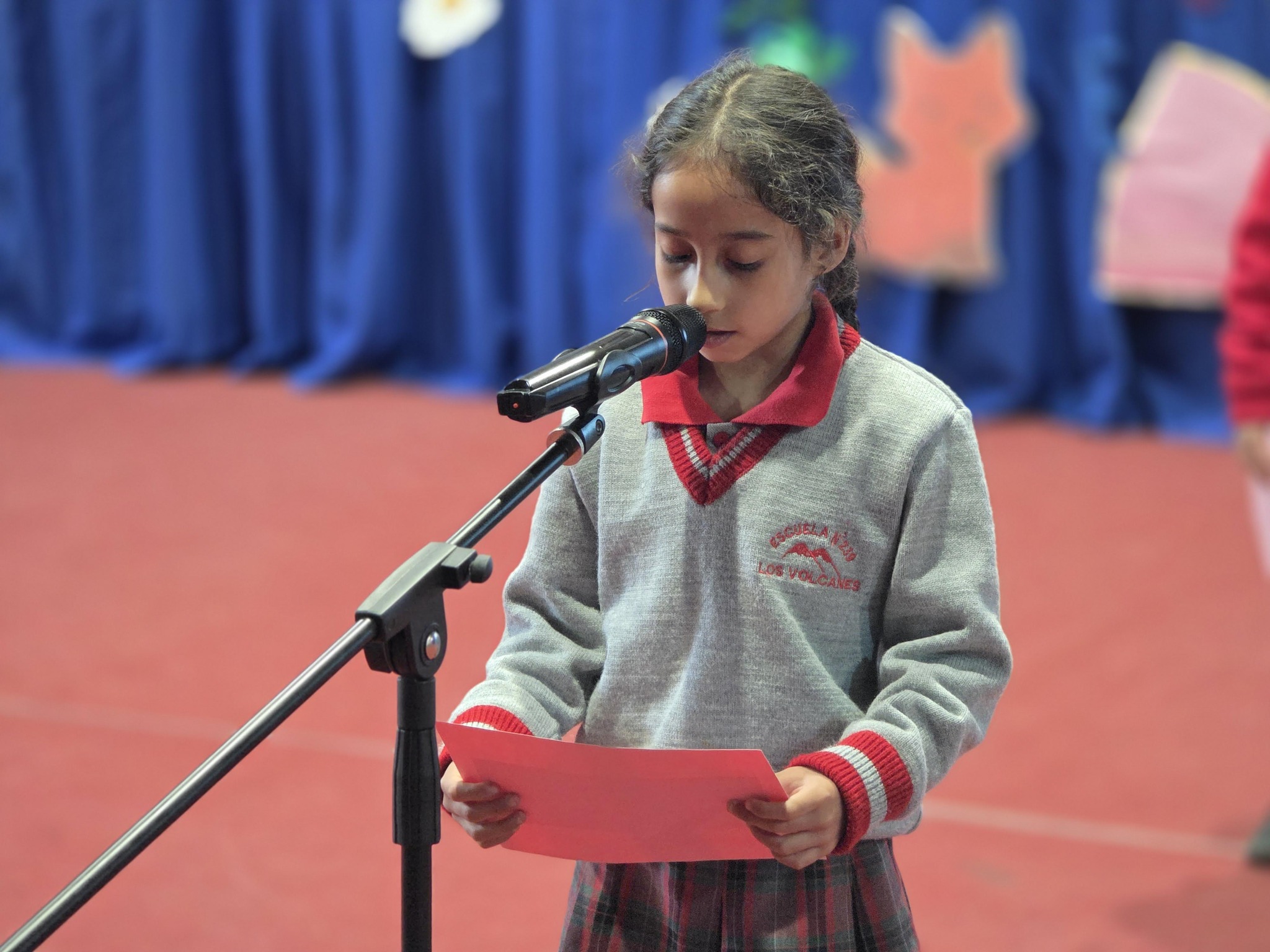 En esta ceremonia, los estudiantes pudieron leer distintos fragmentos de cuentos previamente preparados y terminaron con una canción de un poema musicalizado de la gran poetisa chilena Gabriela Mistral.