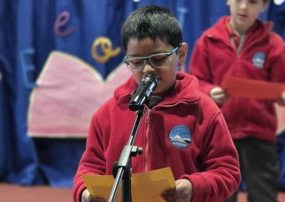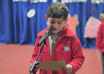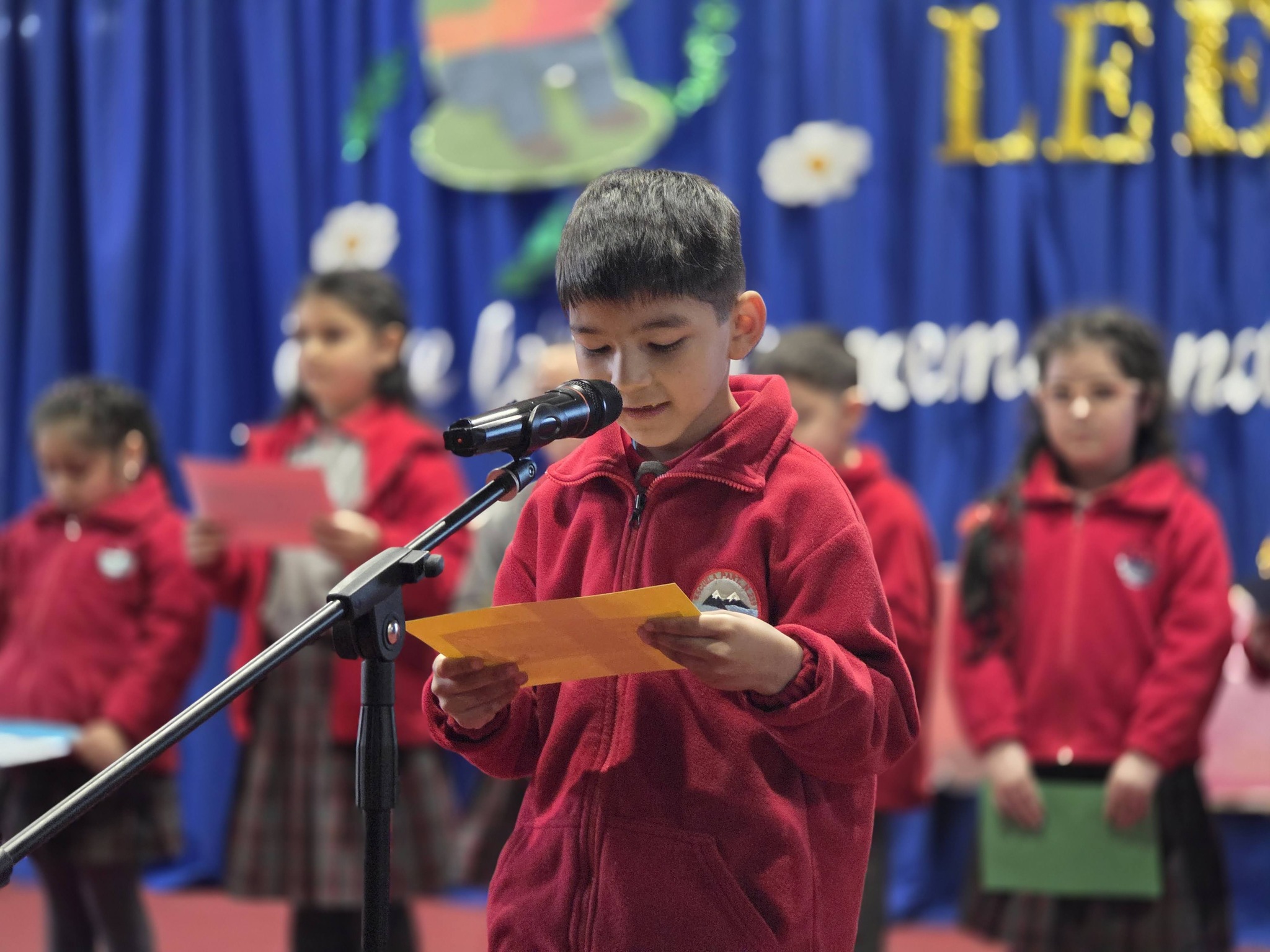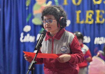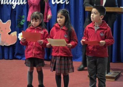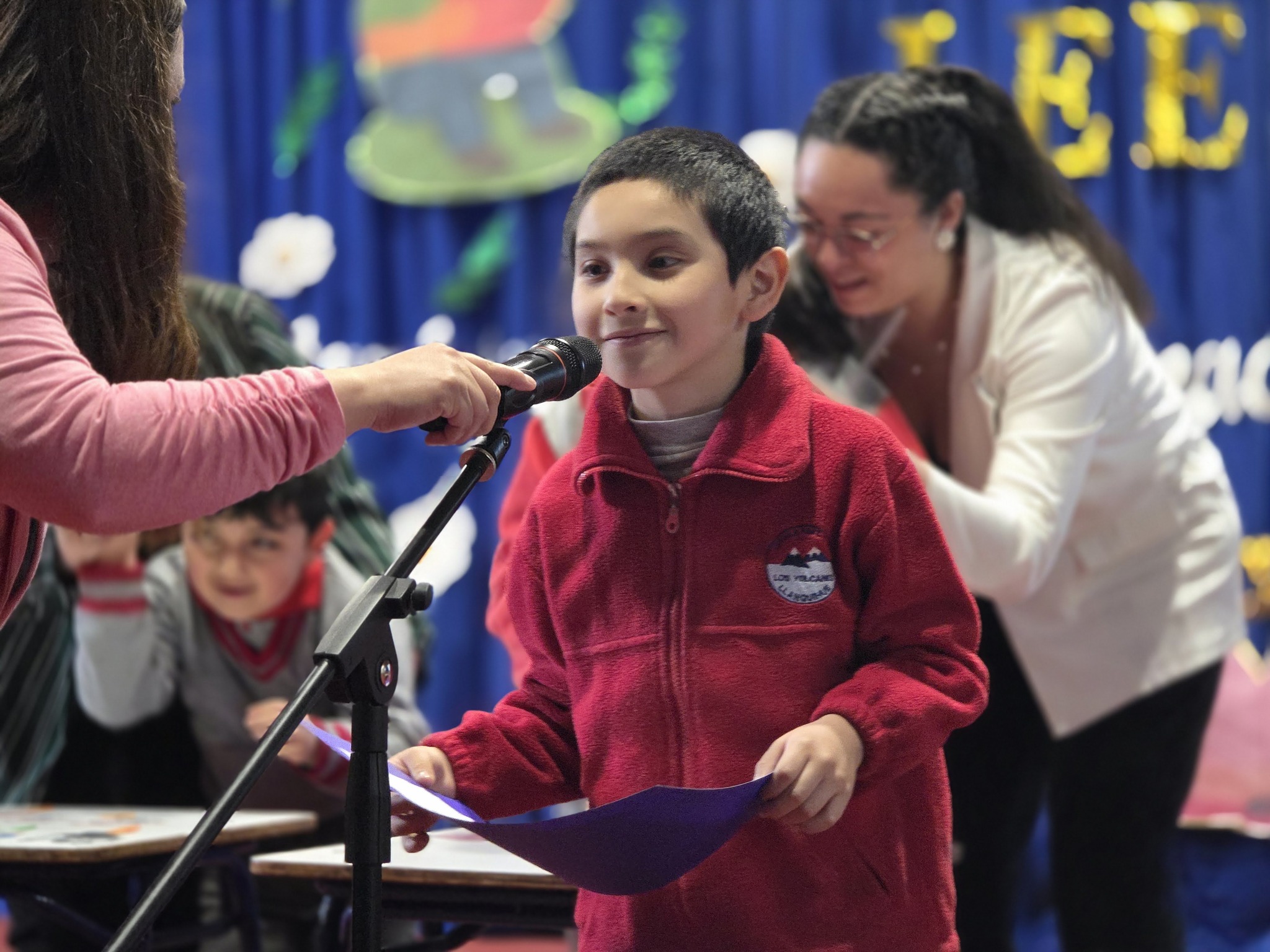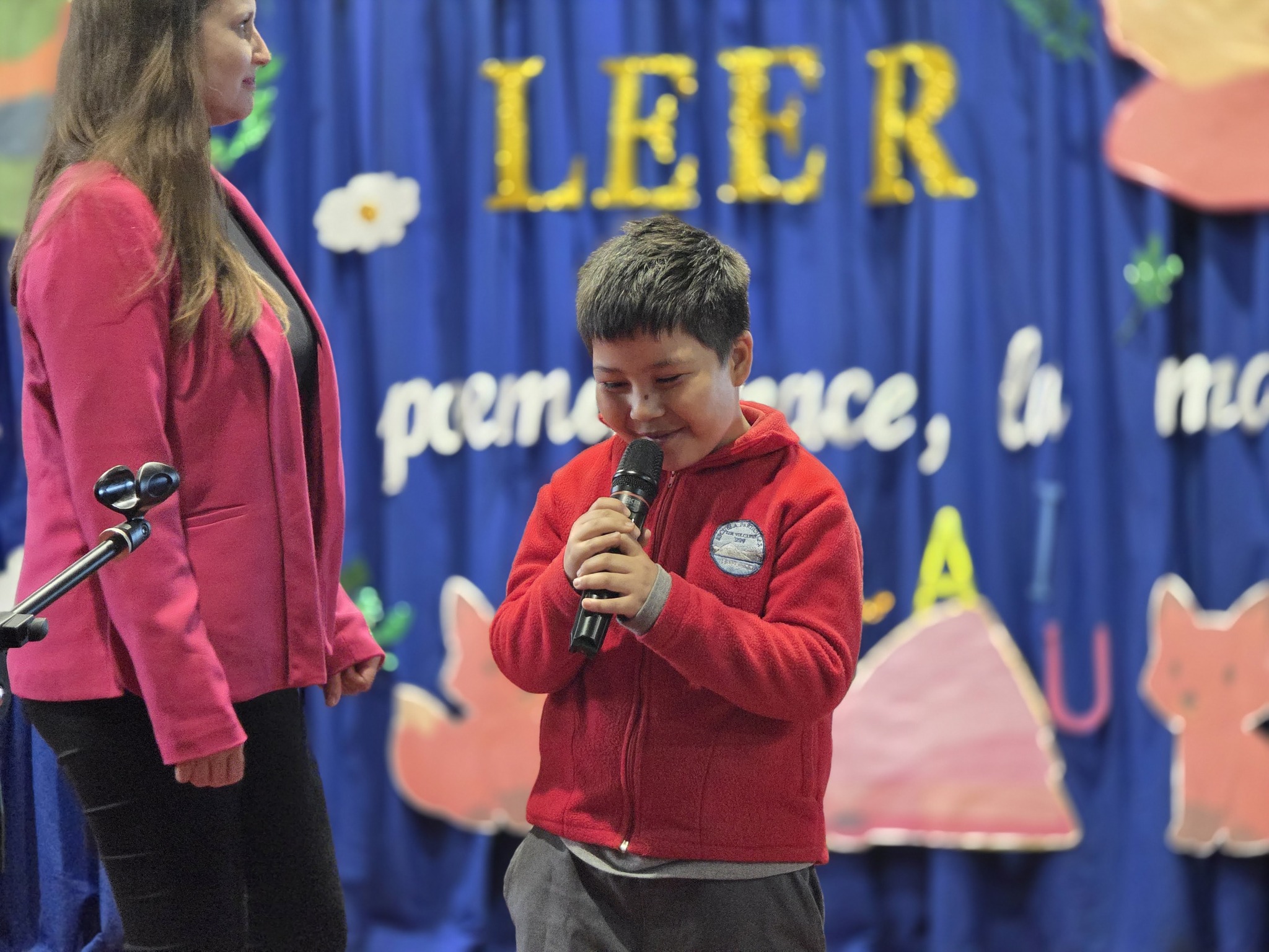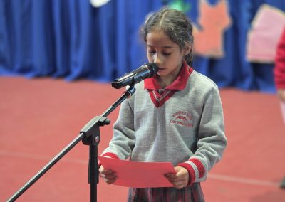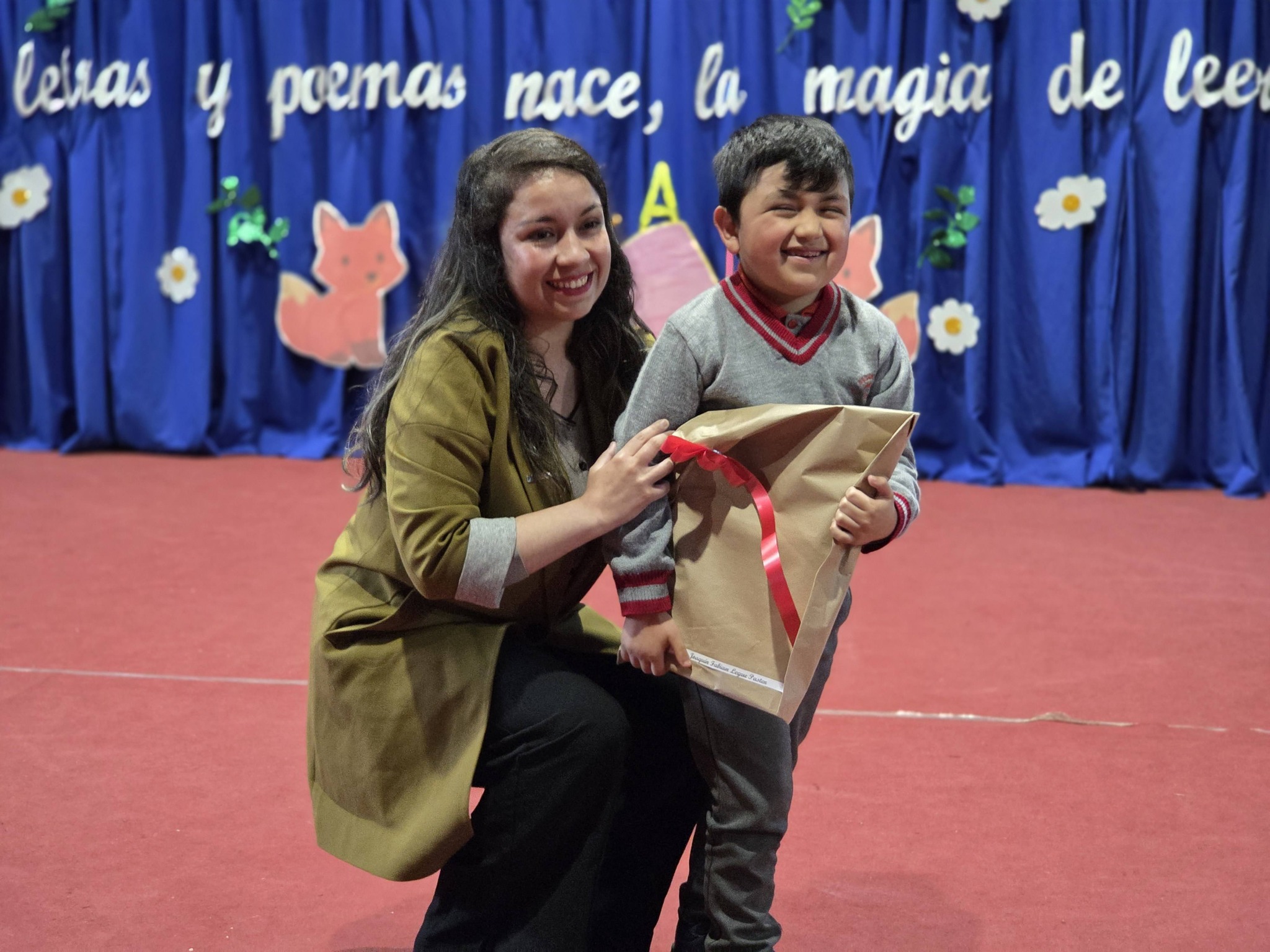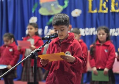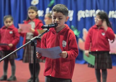 En esta ceremonia, los estudiantes pudieron leer distintos fragmentos de cuentos previamente preparados y terminaron con una canción de un poema musicalizado de la gran poetisa chilena Gabriela Mistral.
